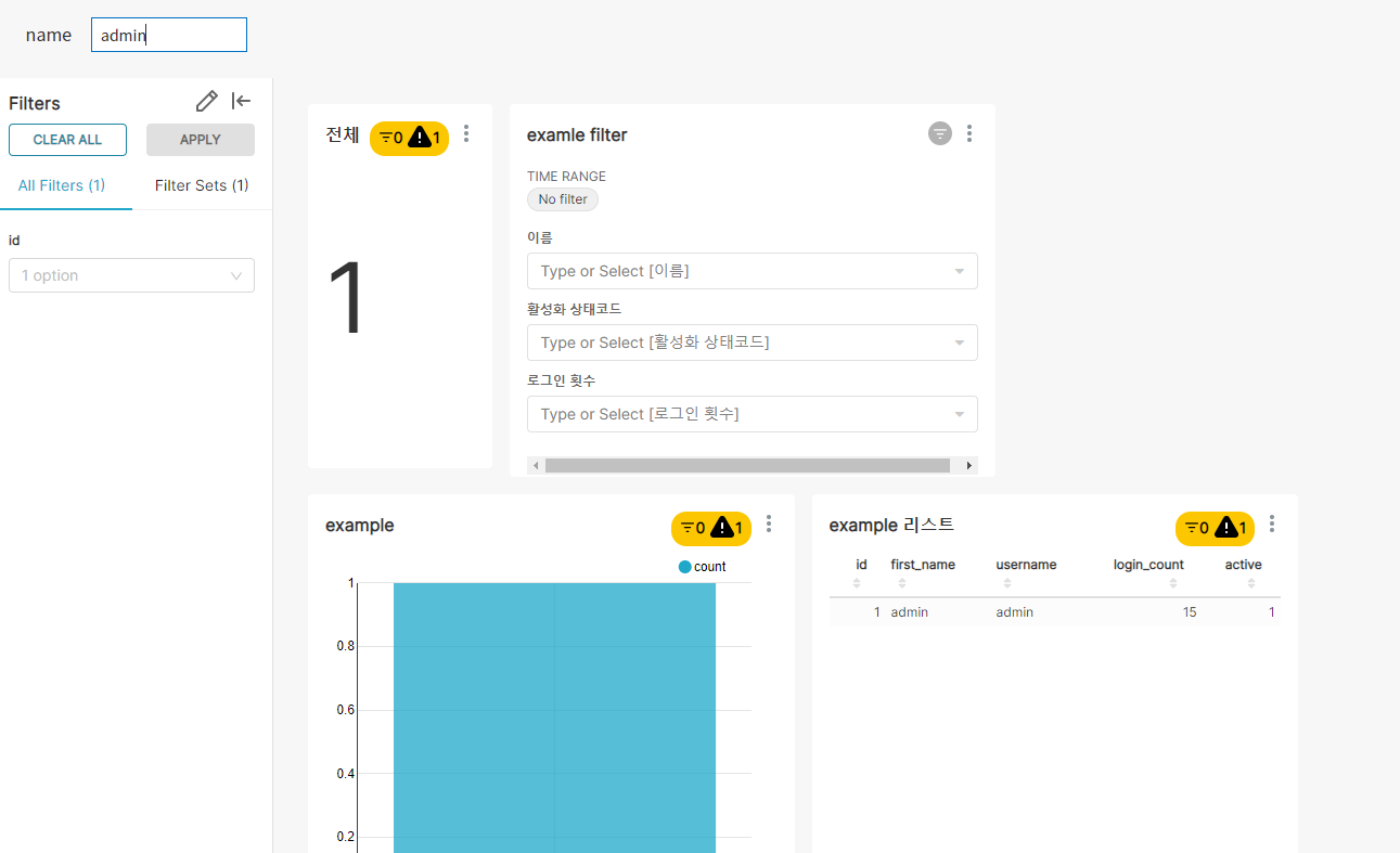 | Apache Superset(아파치 슈퍼셋) 검색조건 Filter 추가하기 - 2 (0) | 2022.03.15 |