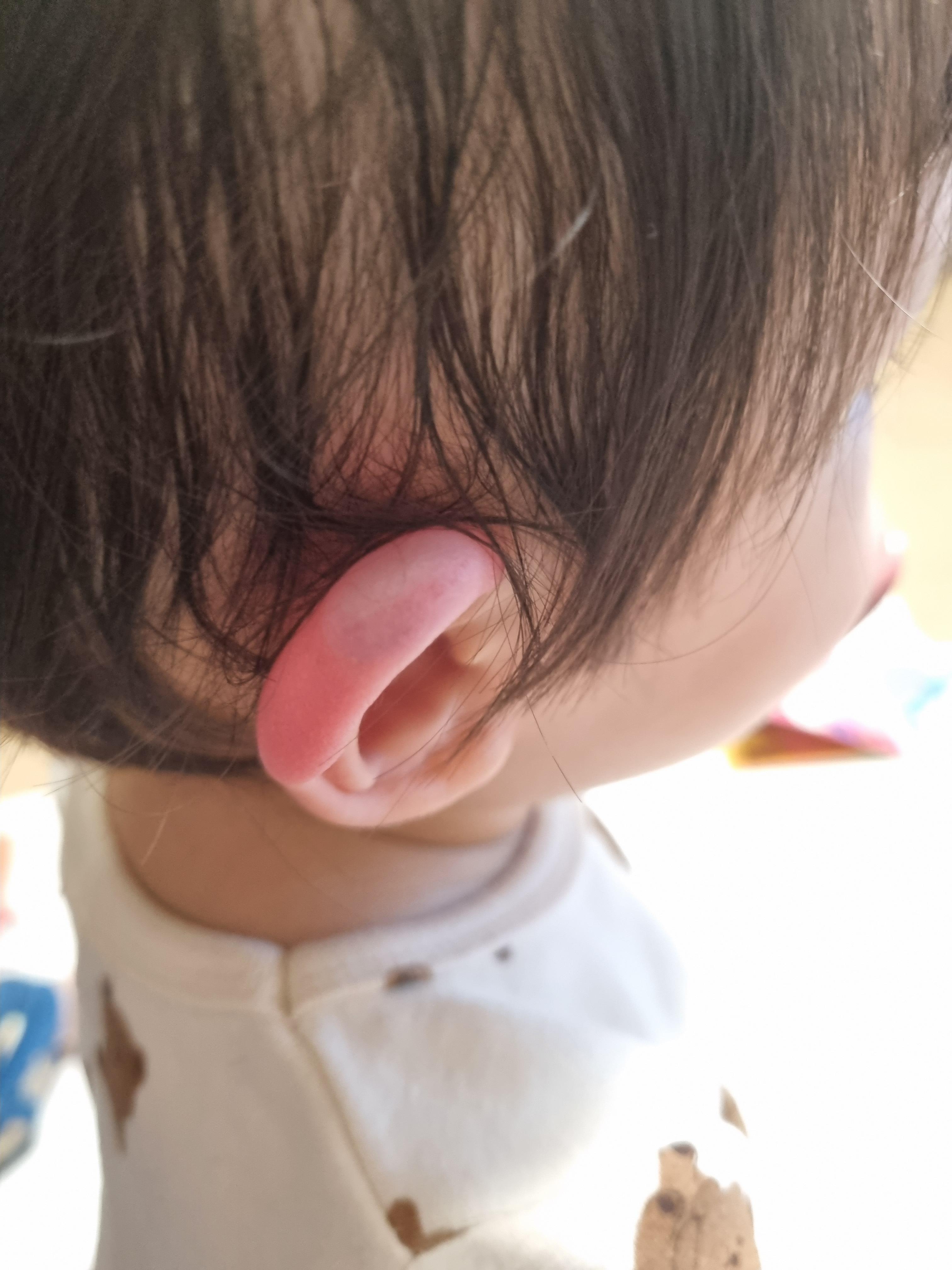그래서 안심하고 있었는데 잠시 후 살펴보니 아기 귀에 멍이 들고 빨갛게 부어있었다. 😥😥😥
