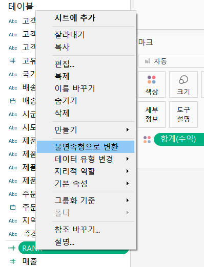 계산된 필드가 연속형으로 되어있어 아래 이미지와 같이 표시된다.