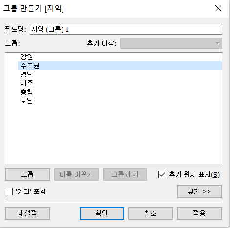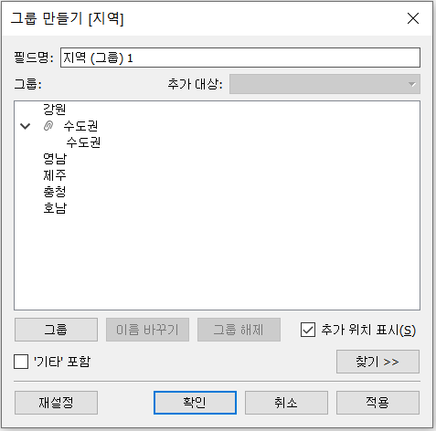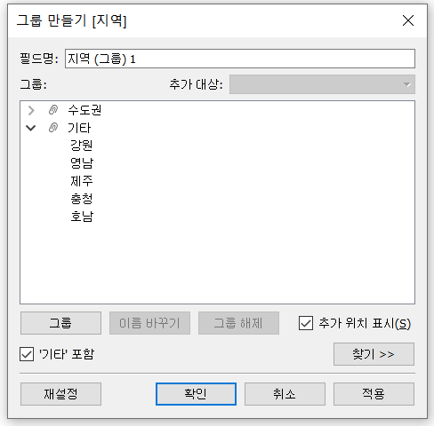 5. 기타 포함 체크 > 나머지 지역들이 기타 그룹으로 묶임