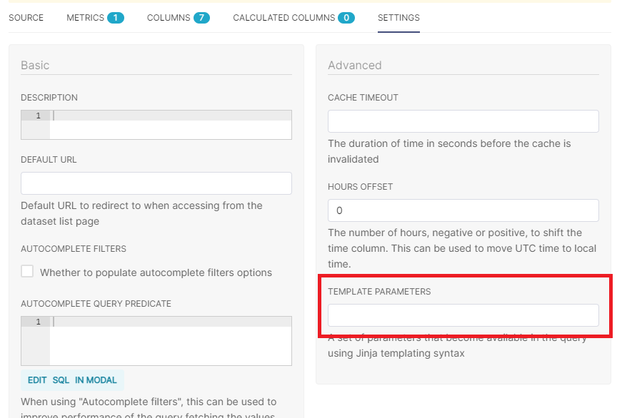 jinja template은 default가 사용하지 않음으로 처리되어 있기 때문에 superset_config.py 파일에서 사용하도록 ("ENABLE_TEMPLATE_PROCESSING": True) 셋팅을 해줘야 한다.