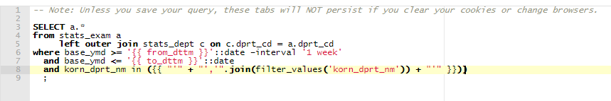 Superset에서는 jinja template을 사용하여 쿼리를 작성할 수 있다.